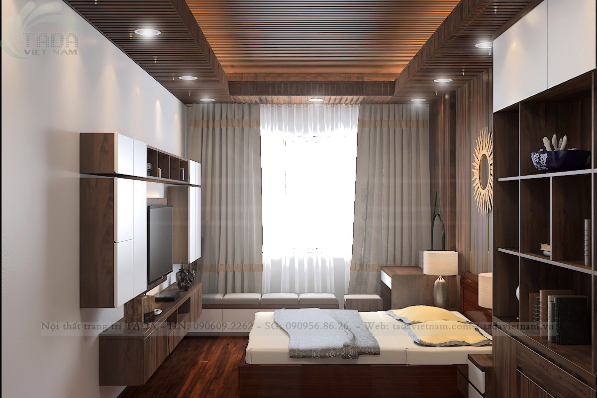 THIẾT KẾ 3D CĂN HỘ CHUNG CƯ VỚI PHÒNG NGỦ VÂN GỖ ÓC CHÓ SANG TRỌNG