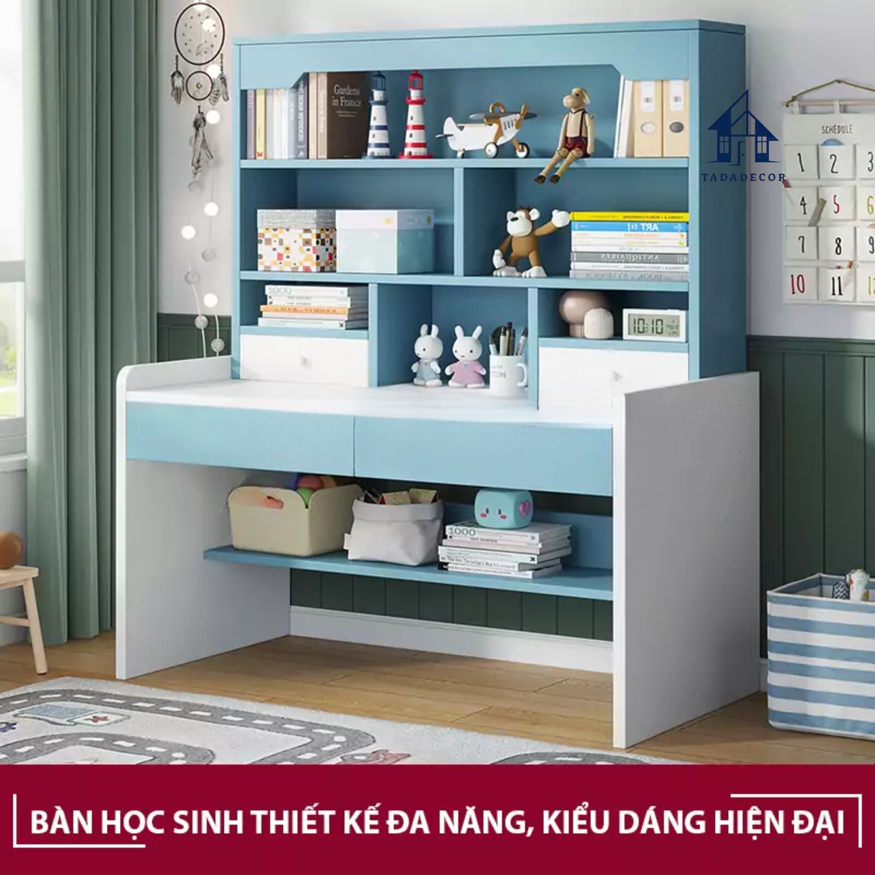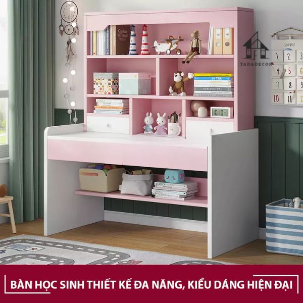 Bàn Học Gỗ Ép Kèm Giá Sách – Tiện Lợi Cho Bé Yêu thương hiệu TADA VIỆT NAM - TDBH77