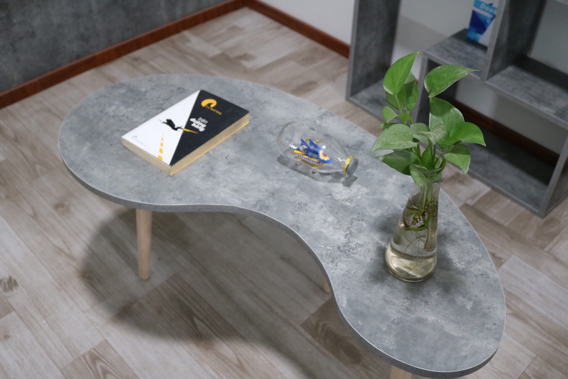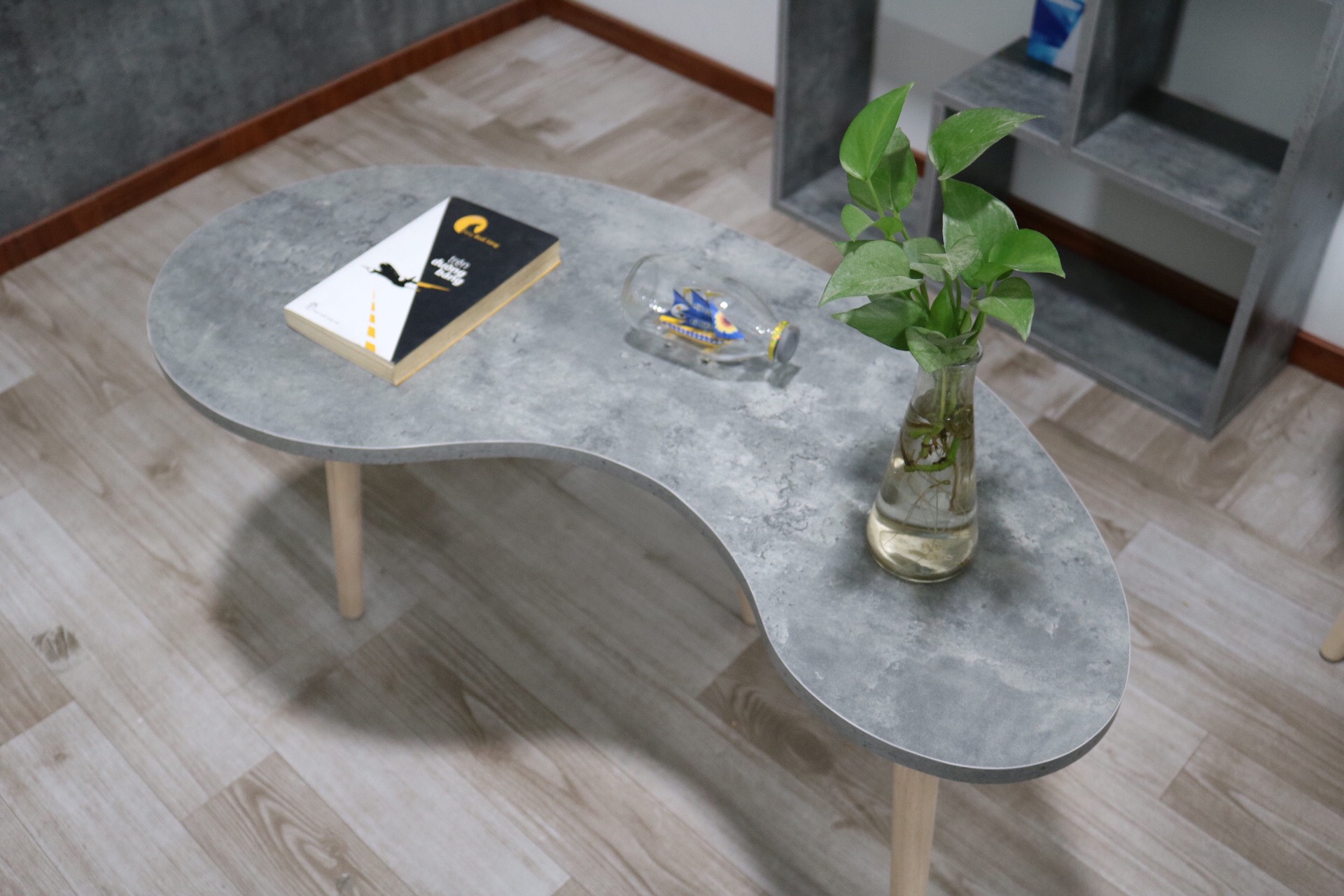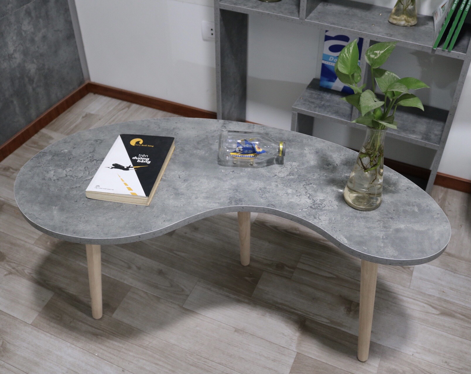 BÀN SOFA PHÒNG KHÁCH MÀU BÊ TÔNG HÌNH HẠT ĐIỀU CHÂN GỖ TỰ NHIÊN - TD1167