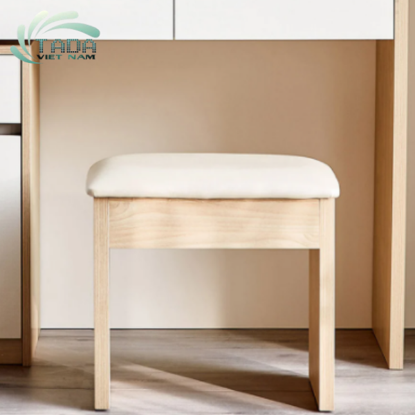 Bàn trang điểm gỗ công nghiệp với kiểu dáng đơn giản trẻ trung đặc biệt thích hợp cho không gian phòng thay đồ giúp chị em sắp xếp những món mỹ phẩm của mình một cách gọn gàng, đẹp đẽ, đồng thời cũng giúp mọi thao tác làm đẹp được đơn giản, tiện lợi hơn rất nhiều. Từ đó có thể tạo cảm hứng và trạng thái tinh thần tốt cho chị em mỗi khi bước ra khỏi nhà.