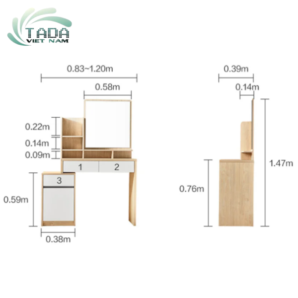 Bàn trang điểm chia ngăn thương hiệu TADA VIETNAM- TD3028