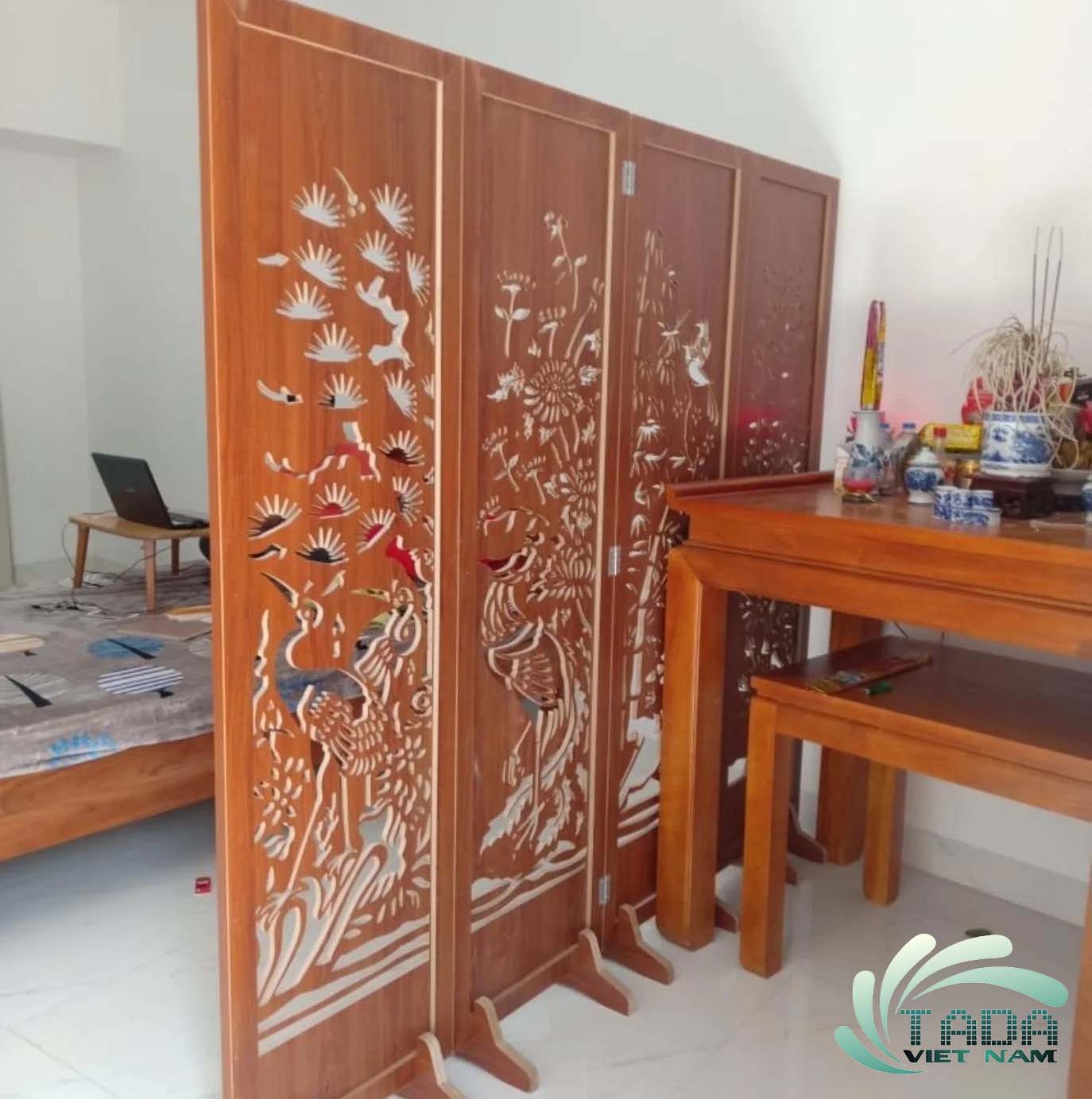 >> Vách bình phong hoa sen mẫu mới màu gụ, gỗ MDF thương hiệu TADA Việt Nam TDVN12
