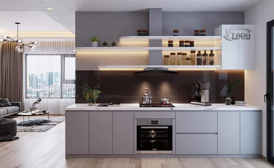 TỦ BẾP CHỮ I -TỔNG HỢP THIẾT KẾ 3D - CÔNG TRÌNH THỰC TẾ TẠI NHÀ KHÁCH - TD990