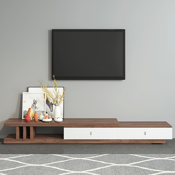 Mẫu kệ tivi chất liệu gỗ công nghiệp với thiết kế kệ hình khối đơn giản kết hợp hai màu chủ đạo là trắng và nâu gỗ tạo sự trang nhã, nhẹ nhàng cũng là một lựa chọn cho những khách hàng khó tính.