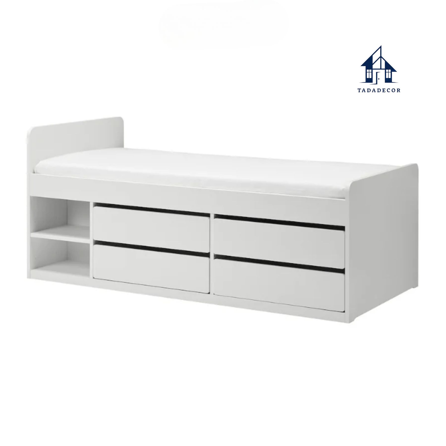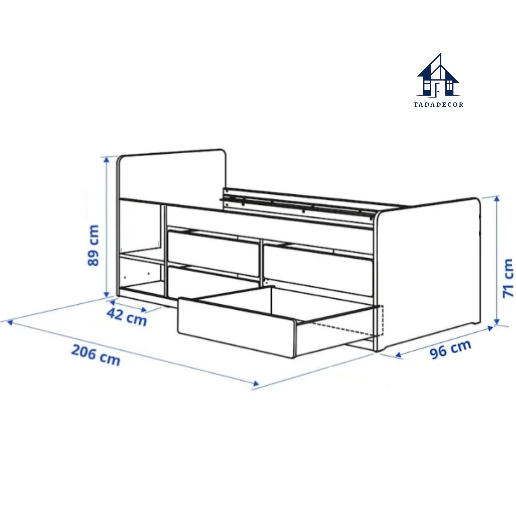 Sản phẩm được thiết kế 2 trong 1, tích hợp giữa giường ngủ và hệ tủ lưu trữ đa năng, giúp bạn tận dụng tối đa từng mét vuông. Phần giường có thể được thiết kế theo kích thước tiêu chuẩn (1m2, 1m4, 1m6...) tùy nhu cầu, đi kèm hệ tủ đầu giường hoặc tủ đứng bên hông với nhiều ngăn chứa rộng rãi: tủ áo, ngăn kéo, hộc để đồ, giá sách, kệ trang trí... tất cả đều nằm gọn trong một thiết kế thống nhất, gọn gàng.