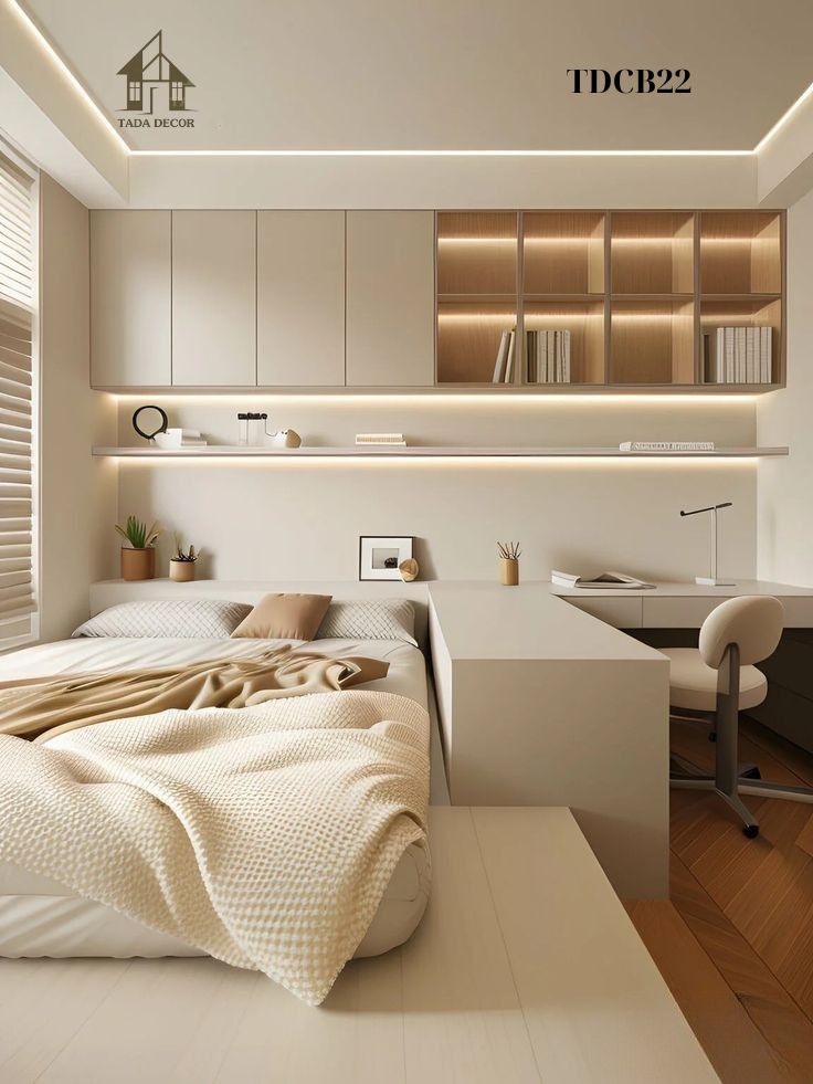 Trong xu hướng thiết kế nội thất hiện nay, những combo nội thất đa năng đang dần trở thành lựa chọn hàng đầu của nhiều gia đình trẻ. Một trong những sản phẩm nổi bật chính là combo nội thất TDCB22, bao gồm giường ngủ liền tủ và kệ sách treo tường – giải pháp hoàn hảo giúp tối ưu diện tích, tăng công năng và mang lại vẻ đẹp tinh tế cho không gian sống.