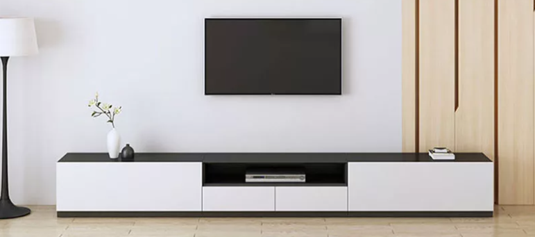 Ngoài bộ bàn ghế để ngồi, nơi đáng chú ý nhất ở căn phòng này là chiếc kệ tivi. Đây cũng chính là điểm nhấn thường thường được chú ý nhiều nhất trong phòng khách. Vì vậy khi lựa chọn kệ tivi cần lựa chọn kỹ lưỡng về hình dáng, màu sắc sao cho phù hợp với nội thất bên trong và không gian khu vực tiếp khách.