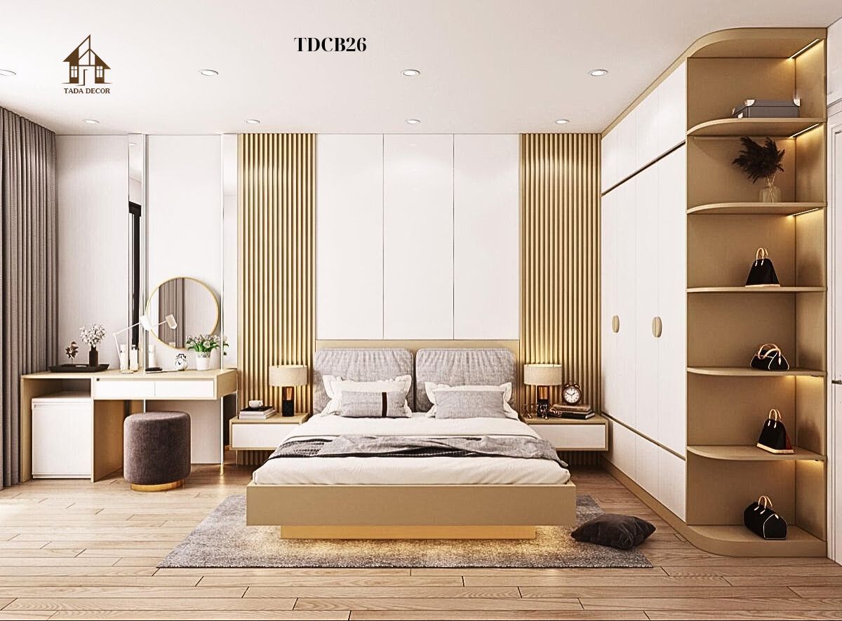 Combo nội thất TDCB26 – Giường ngủ, tủ quần áo & bàn trang điểm hiện đại, sang trọng