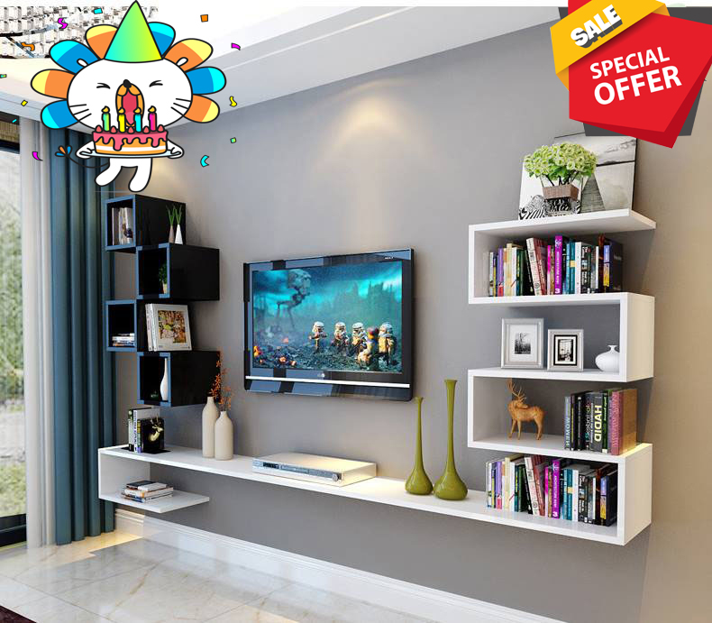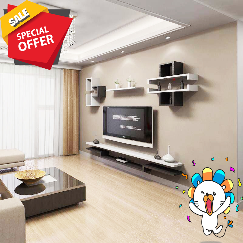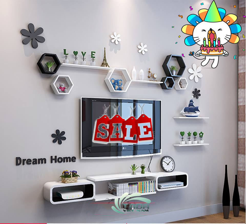 Bộ kệ tivi treo tường kệ dưới Tivi dài 160cm x Sâu 20cm, 2 kệ U lớn: 60x20cm, 2 kệ chữ U nhỏ trắng: 25x20cm, 3 kệ chữ U đen: 20x20cm giá bán 2.200.000đ/ 1 bộ, giá sale 1.790.000đ/ 1 kệ.