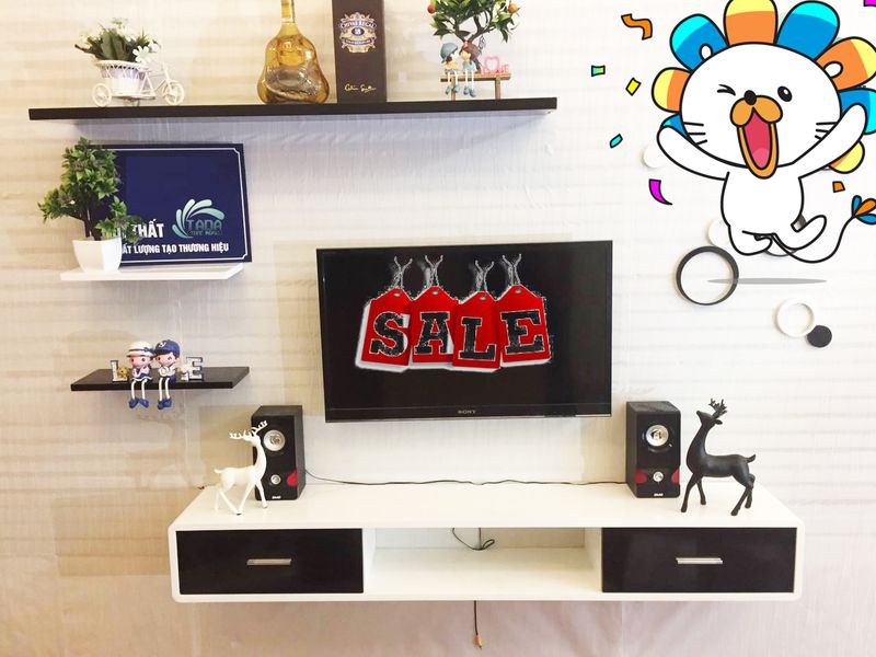 Bộ kệ tivi treo tường TADA phần dưới tivi dài 1m6 giá bán 1.920.000đ/ 1 bộ, giá sale 1.690.000đ/ 1 kệ