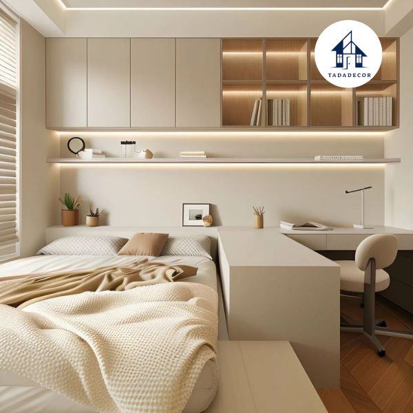 Chọn giường có ngăn kéo ẩn, kệ đa năng, hoặc tủ quần áo tích hợp phù hợp với nhu cầu.