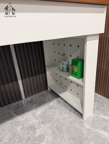 Ngoài ra, việc tích hợp nhiều ngăn lưu trữ giúp giảm bớt nhu cầu mua thêm tủ phụ hoặc kệ rời. Điều này không chỉ tiết kiệm diện tích mà còn giúp không gian nhìn gọn gàng và đồng bộ hơn.