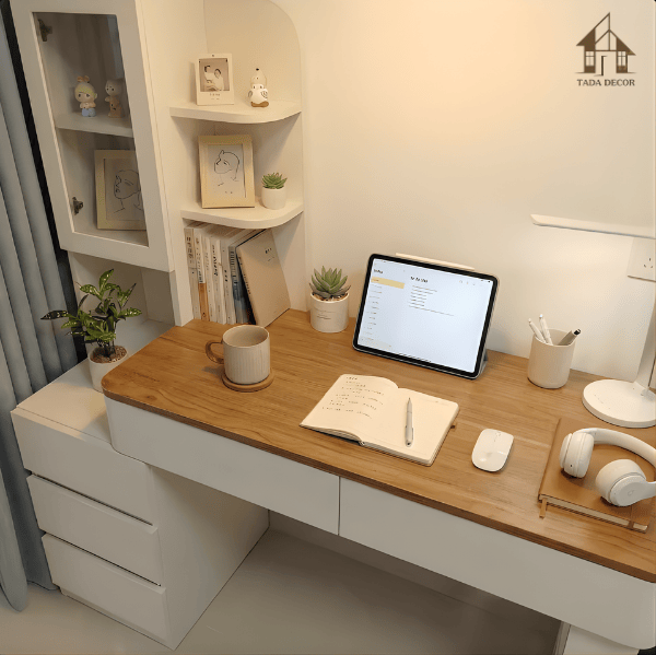 Có những món nội thất nhìn qua tưởng đơn giản, nhưng khi đặt vào không gian thật, sử dụng mỗi ngày, mới thấy nó “đáng” ở nhiều thứ hơn mình nghĩ. Mẫu bàn học này của TADA Decor là một ví dụ điển hình như vậy. Không phải kiểu thiết kế cầu kỳ, không quá nhiều chi tiết phô trương, nhưng lại tạo cảm giác rất “vừa đủ” – đủ đẹp để nhìn lâu không chán, đủ tiện để dùng lâu không thấy bất tiện.