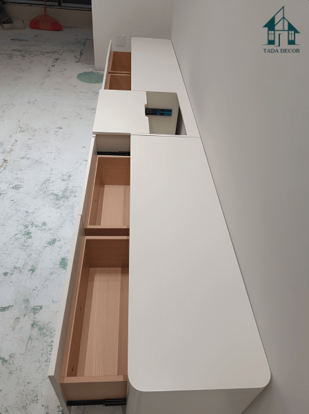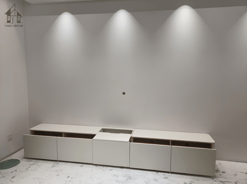 Rất nhiều mẫu kệ tivi nhìn rất đẹp trên ảnh nhưng khi mang về lắp đặt lại không phù hợp với không gian thực tế do sai tỷ lệ hoặc không đồng bộ với các món nội thất khác, với TADA, mỗi thiết kế đều được tính toán dựa trên kích thước và bố cục không gian cụ thể của khách hàng để đảm bảo khi hoàn thiện, sản phẩm không chỉ đẹp riêng lẻ mà còn hòa hợp với toàn bộ căn phòng, từ chiều dài kệ, độ cao đến cách chia khoang đều được điều chỉnh để phù hợp nhất, đây là lý do vì sao khách hàng khi nhận sản phẩm thường có cảm giác “đúng cái mình cần” chứ không phải “tạm dùng”.
