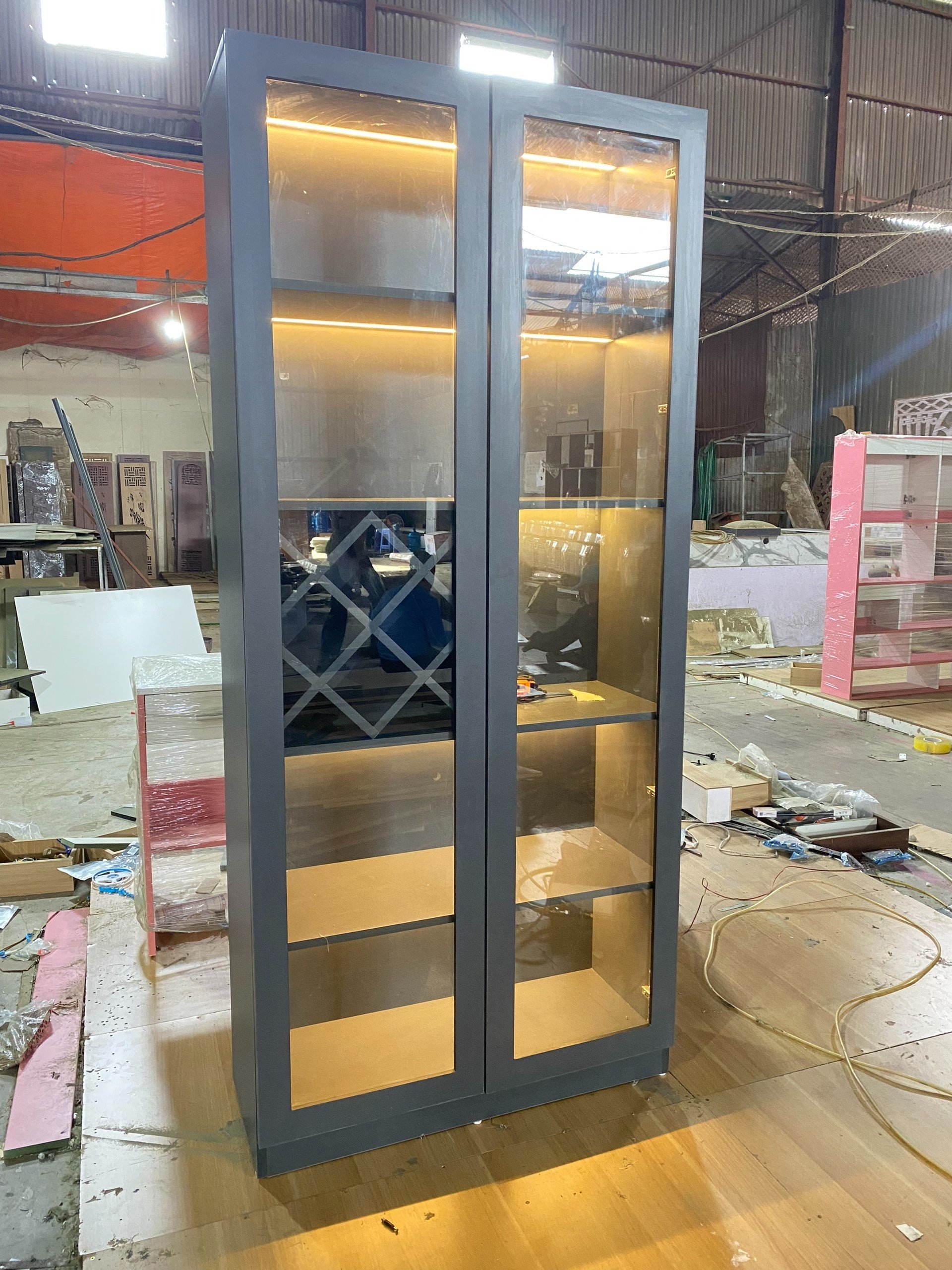 Feedback mẫu tủ rượu khung gỗ bo kính 2 cánh