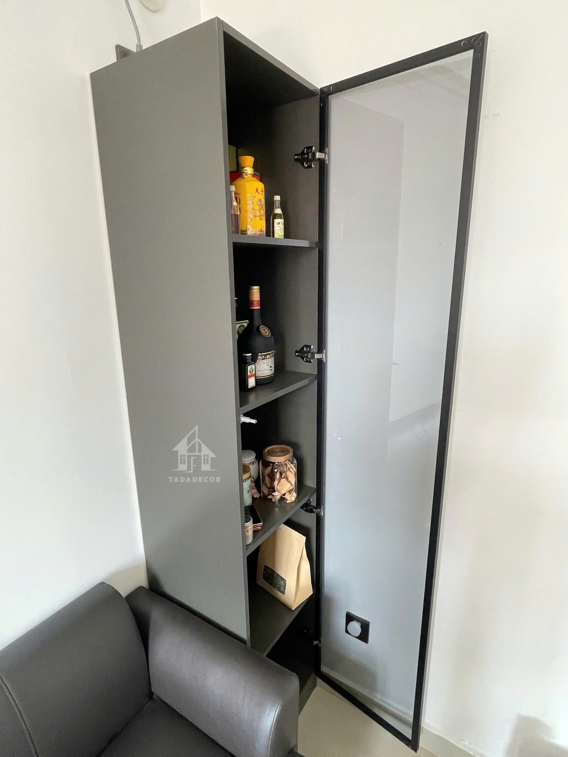 Phong cách nội thất hiện đại thường ưa chuộng sự tối giản nhưng vẫn đầy đủ tiện nghi. Một chiếc tủ rượu cánh kính không chỉ mang lại sự sang trọng mà còn giúp làm nổi bật những món đồ nội thất khác trong phòng.
