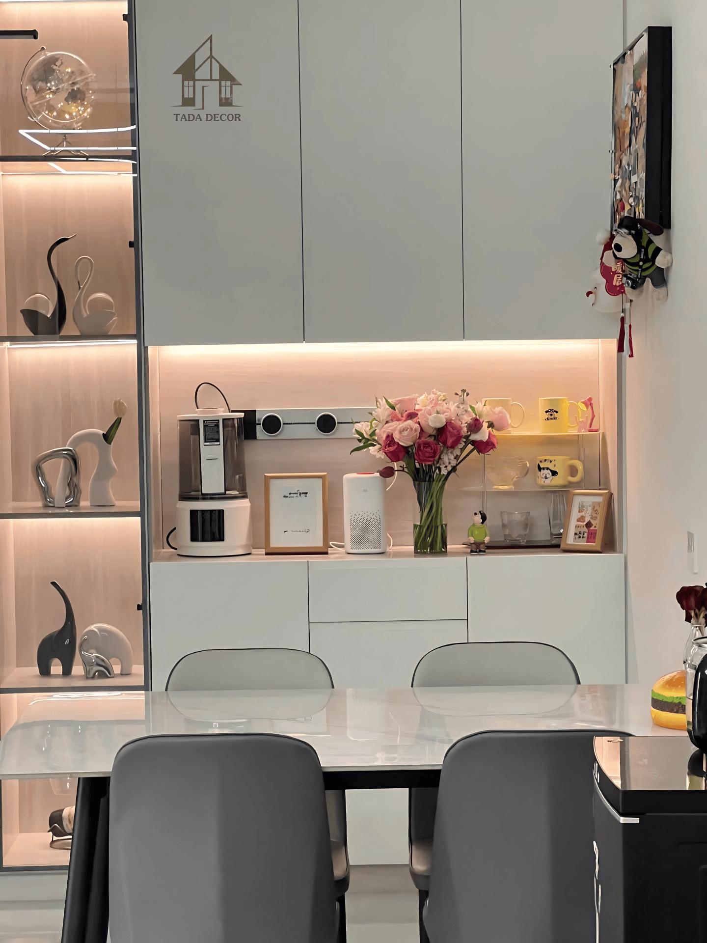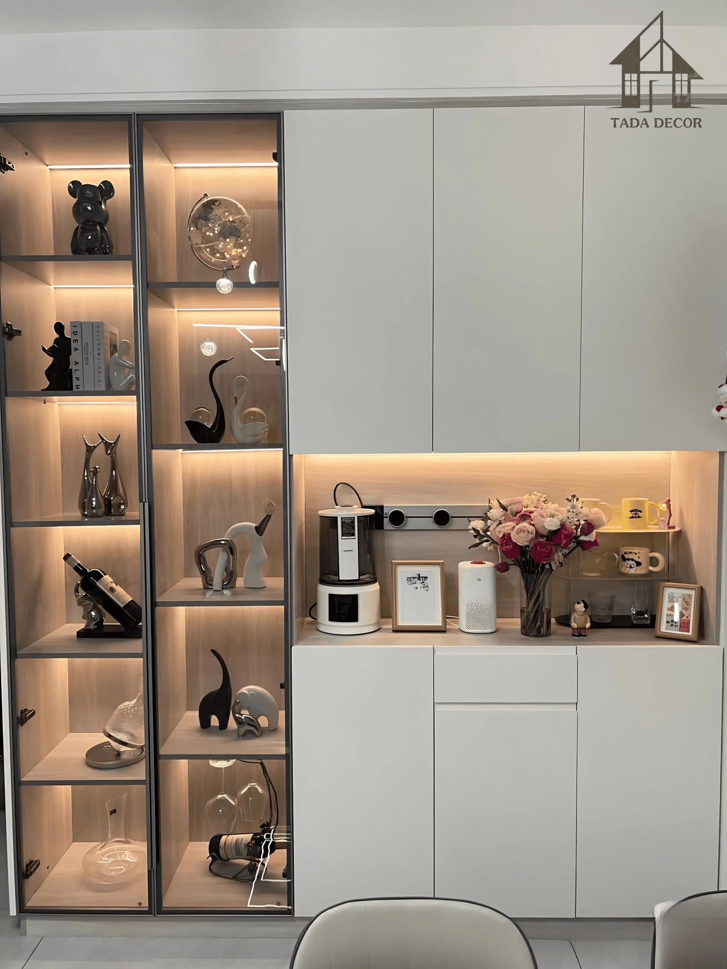 Trong quá trình hoàn thiện không gian sống, phần lớn khách hàng đều gặp một vấn đề giống nhau: không phải thiếu nội thất mà là thiếu một hệ nội thất có thể giải quyết đồng thời nhiều nhu cầu. Một chiếc tủ trưng bày đẹp nhưng không đủ chỗ chứa đồ, một hệ tủ bếp tiện lợi nhưng lại thiếu tính thẩm mỹ khi đặt ở phòng khách, hay một góc decor có gu nhưng không có tính ứng dụng lâu dài. Chính vì vậy, mẫu tủ đa năng của TADA được thiết kế như một giải pháp tổng thể, kết hợp giữa tủ trưng bày phòng khách, tủ rượu, tủ chứa đồ và tủ bếp mini trong cùng một hệ thống liền mạch, giúp không gian trở nên gọn gàng, có chiều sâu và thực sự “sống được” trong thời gian dài chứ không chỉ đẹp ở thời điểm ban đầu.