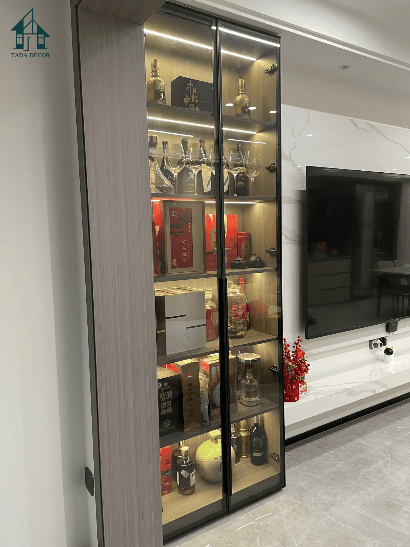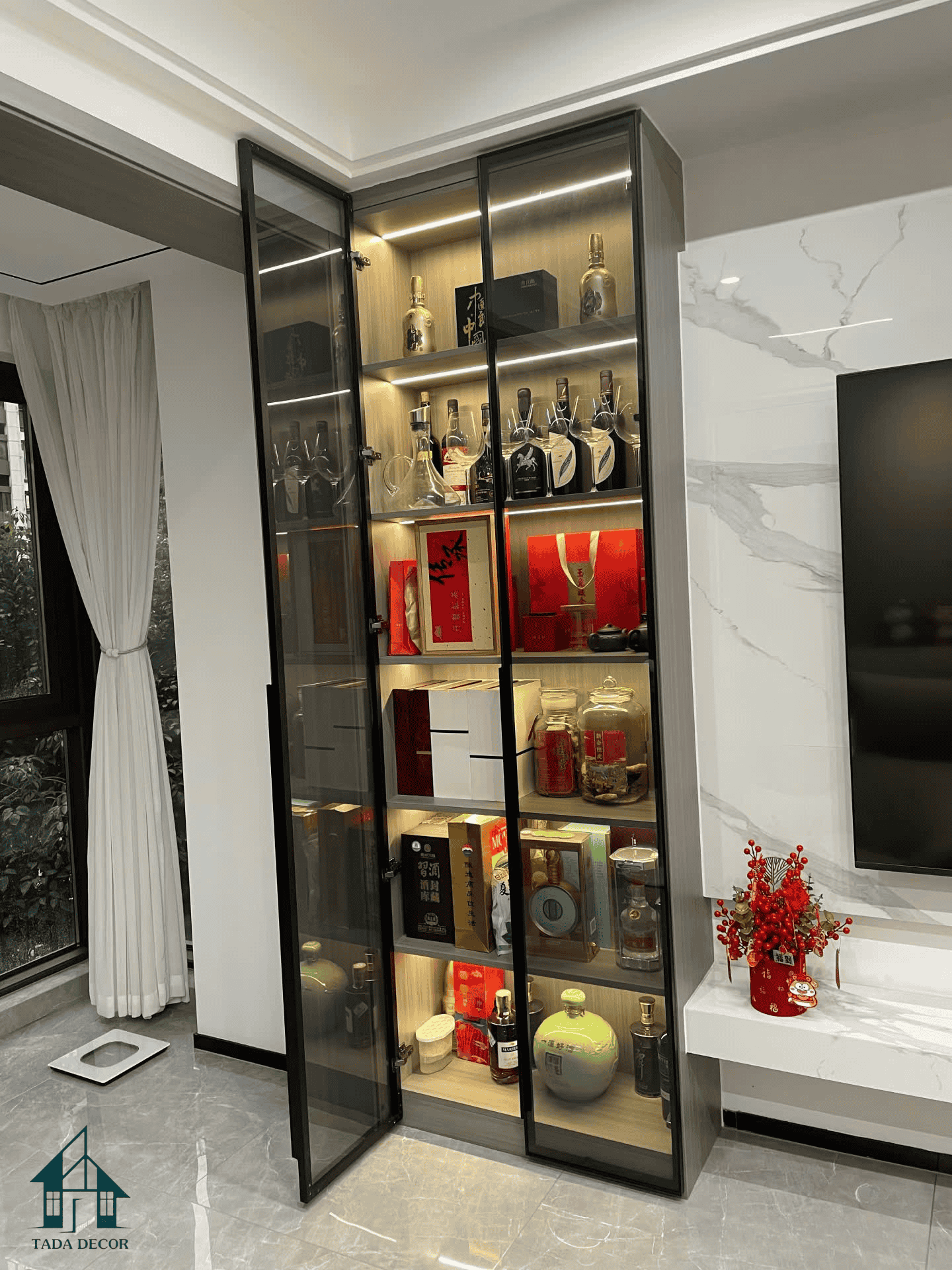 Đây không phải là kiểu tủ để “cất đồ”, mà là tủ để “show”. Nó nâng tầm không gian sống, đặc biệt là phòng khách.