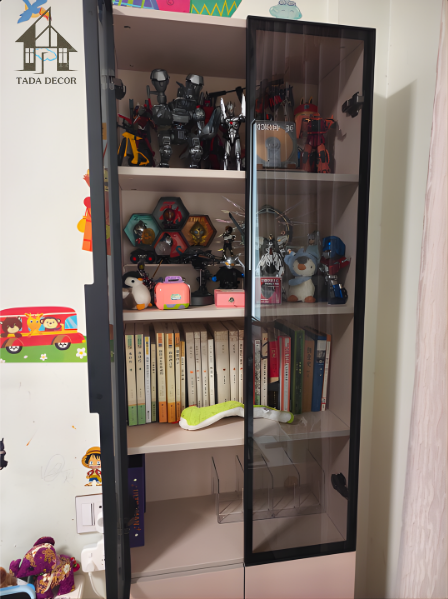 Một trong những điểm khiến TADA đánh giá cao mẫu sản phẩm này là khả năng ứng dụng rất linh hoạt. Đây không phải kiểu tủ chỉ dành cho một mục đích cố định. Khách hàng hoàn toàn có thể dùng nó như một tủ kính trưng bày mô hình, một nơi để xếp sách, lưu trữ phụ kiện, bày đồ decor hoặc cất những món đồ cá nhân muốn giữ ngăn nắp mà vẫn dễ nhìn thấy. Chính sự đa năng này làm cho chiếc tủ phù hợp với nhiều nhóm người dùng khác nhau hơn, từ trẻ em, học sinh, người trẻ sống một mình cho tới các gia đình nhỏ.