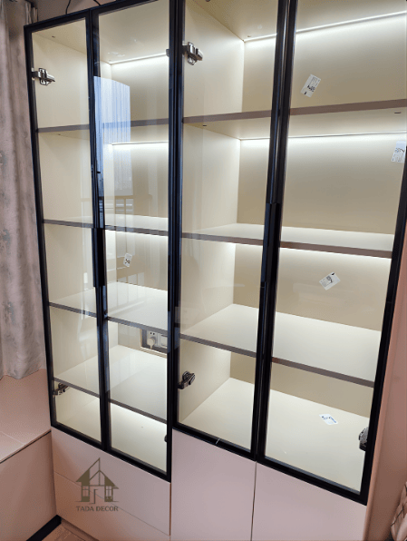 Trong không gian sống hiện đại, một chiếc tủ trưng bày không chỉ đơn thuần là nơi lưu trữ mà còn là yếu tố thể hiện gu thẩm mỹ của gia chủ. Mẫu tủ trưng bày kính mà TADA thực hiện mang phong cách hiện đại, tối giản nhưng vẫn tạo được điểm nhấn rõ ràng nhờ hệ khung kính kết hợp đèn LED.