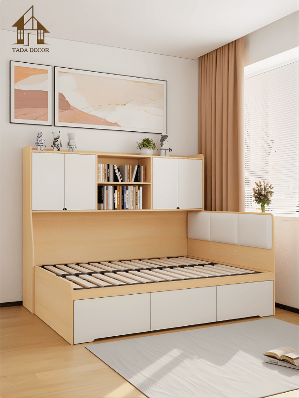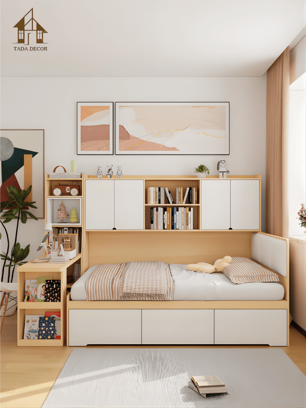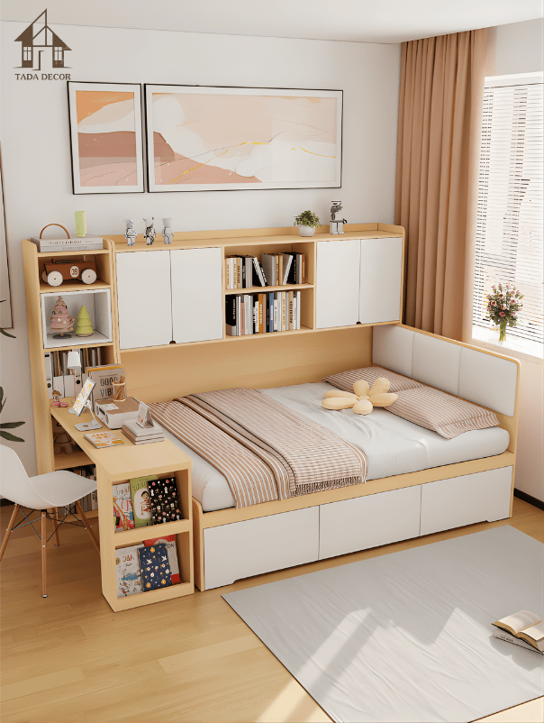 TADA DECOR hiểu rằng khách hàng ngày nay không chỉ mua một chiếc giường. Họ đang tìm một giải pháp cho không gian sống. Họ cần một sản phẩm giúp căn phòng đẹp hơn, gọn hơn, dễ ở hơn và phù hợp với cuộc sống lâu dài. Vì vậy, việc tích hợp bàn học, kệ sách, tủ lưu trữ và giường ngủ trong cùng một thiết kế chính là câu trả lời rất rõ ràng cho nhu cầu ấy.
