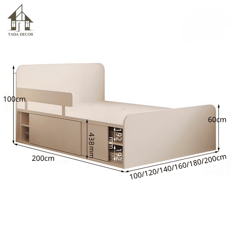 Hiểu rằng nhu cầu của mỗi gia đình là khác nhau, TADA cung cấp nhiều kích thước cho mẫu giường này, từ 1m, 1m2, 1m4 đến 1m6 và 2m.