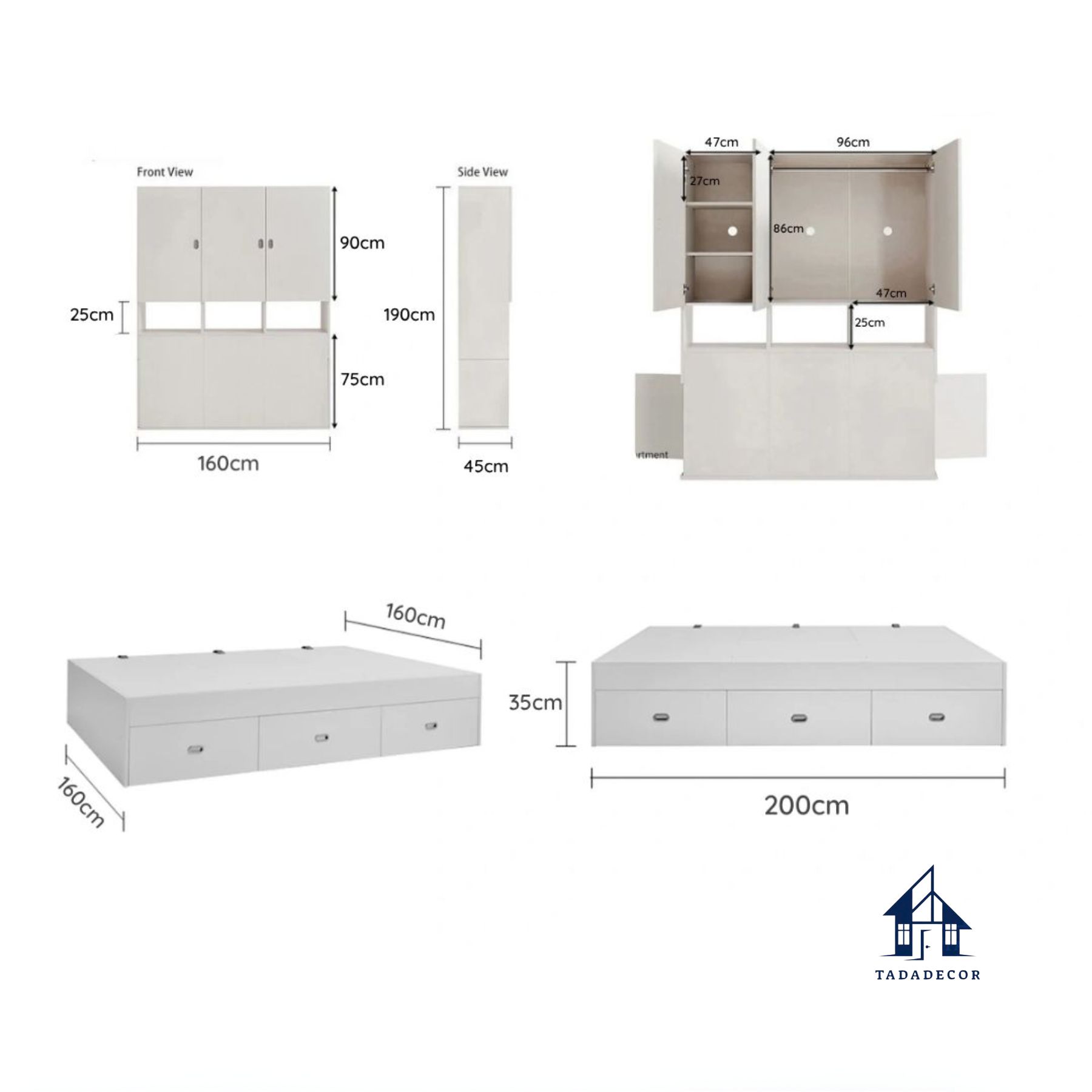 Giường ngủ có tủ liền kề – Thiết kế siêu tiện dụng thương hiệu TADA- TD228