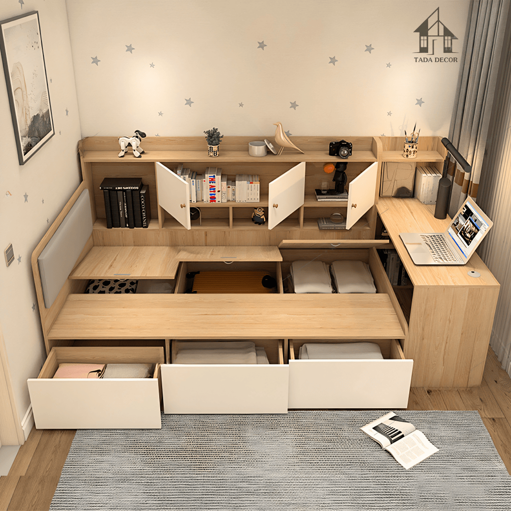 Mẫu giường kèm bàn học và tủ đa năng TADA