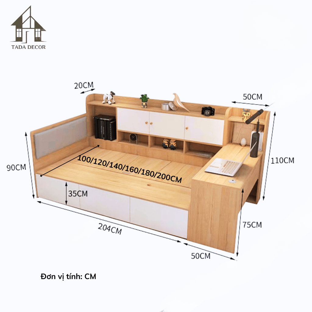 Giường ngủ đa năng TADA – Giường thông minh kèm bàn học | TDGN02