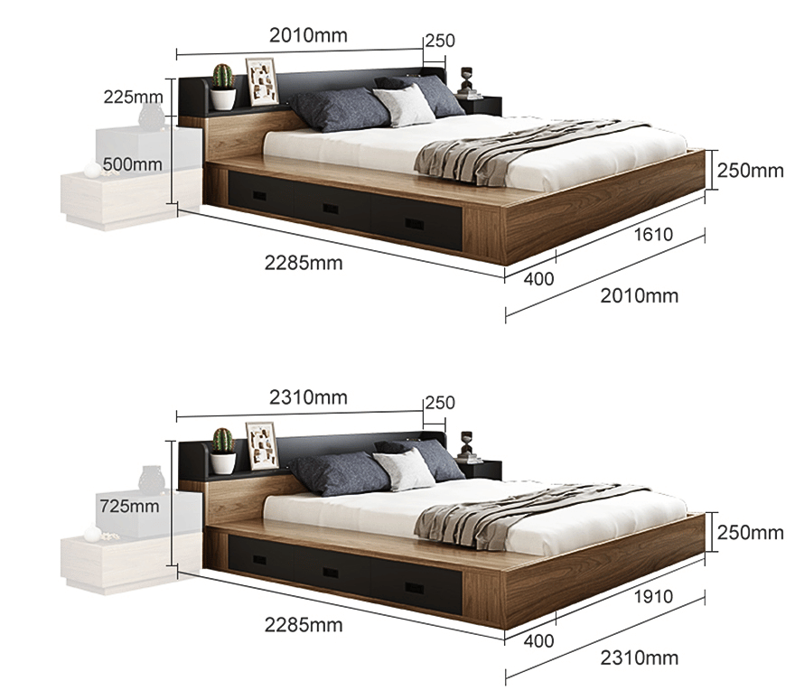 Tiện ích thông minh: Hộc kéo lưu trữ đồ đạc gọn gàng, tiết kiệm diện tích.