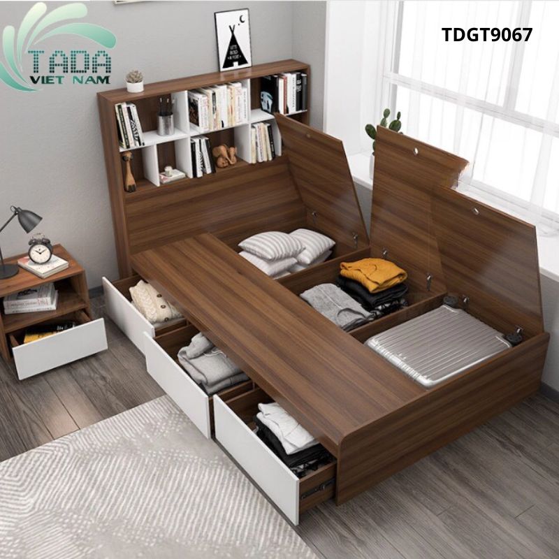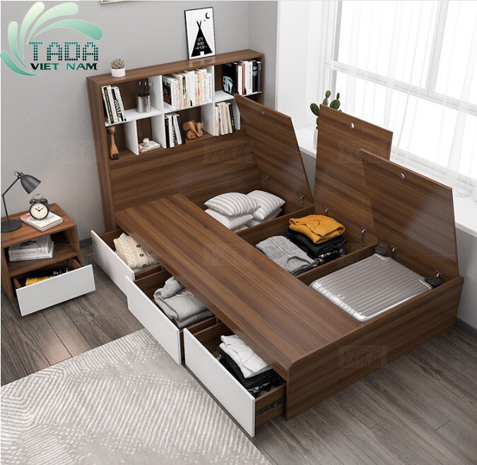 Thiết kế độc đáo đa năng với các ngăn kéo chứa đồ, kệ sách trang trí,...