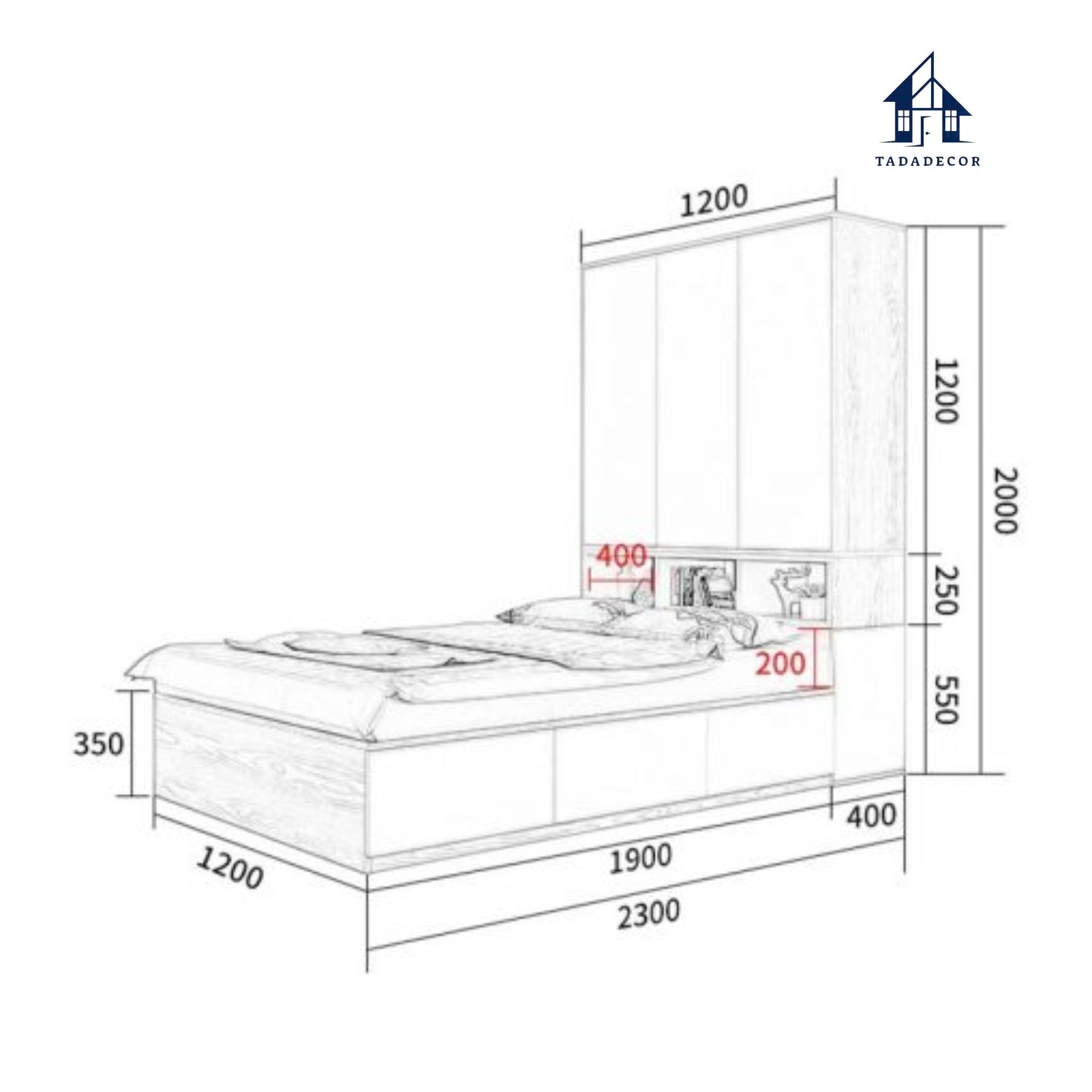 Giường ngủ tích hợp tủ để đồ – Gọn gàng cho căn hộ nhỏ thương hiệu TADA - TD230