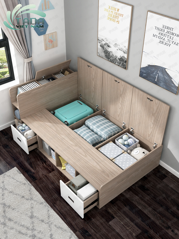GIƯỜNG THÔNG MINH KẾT HỢP KỆ ĐẦU GIƯỜNG (dài 2m x rộng 1m2) - GT14