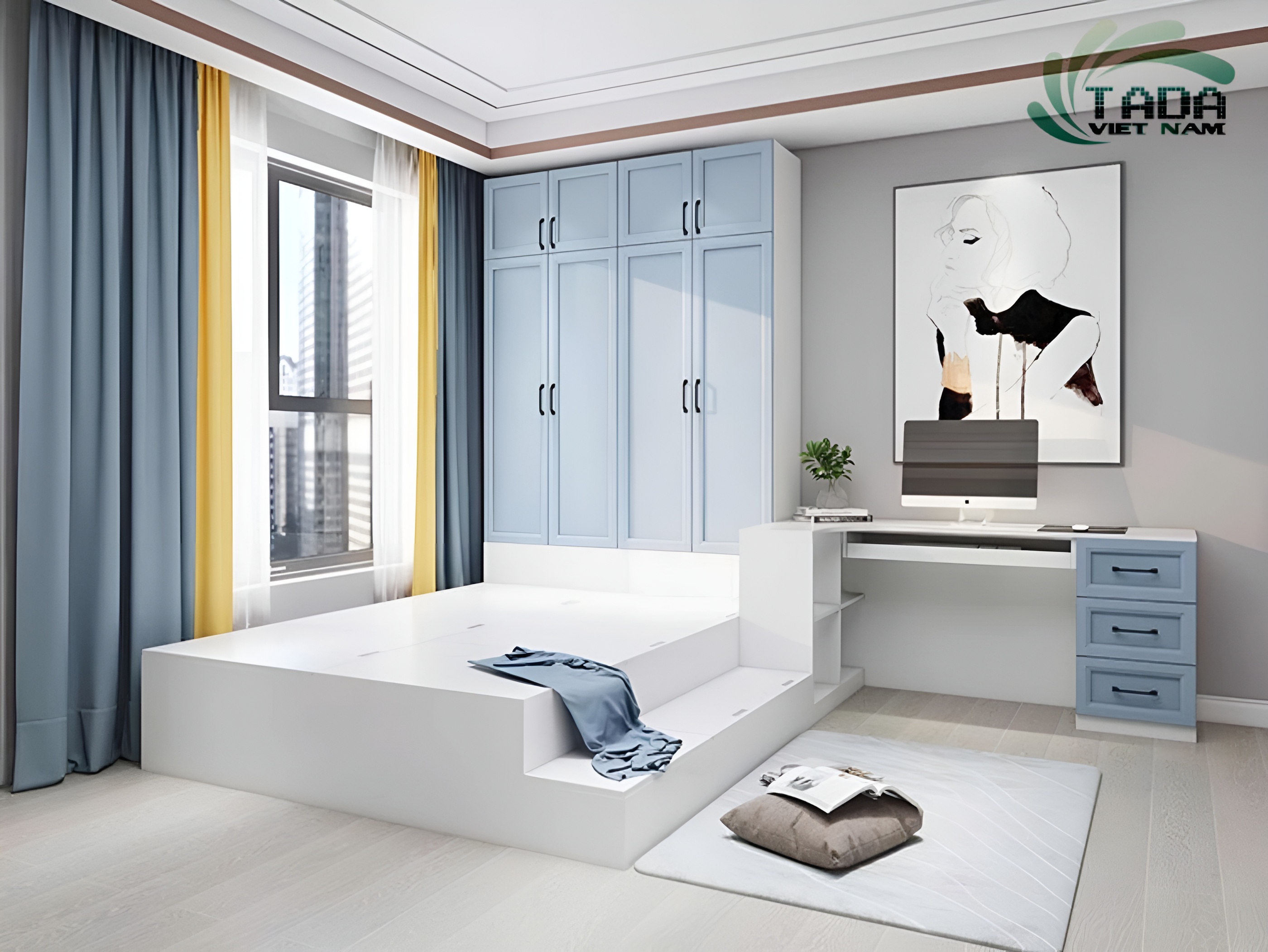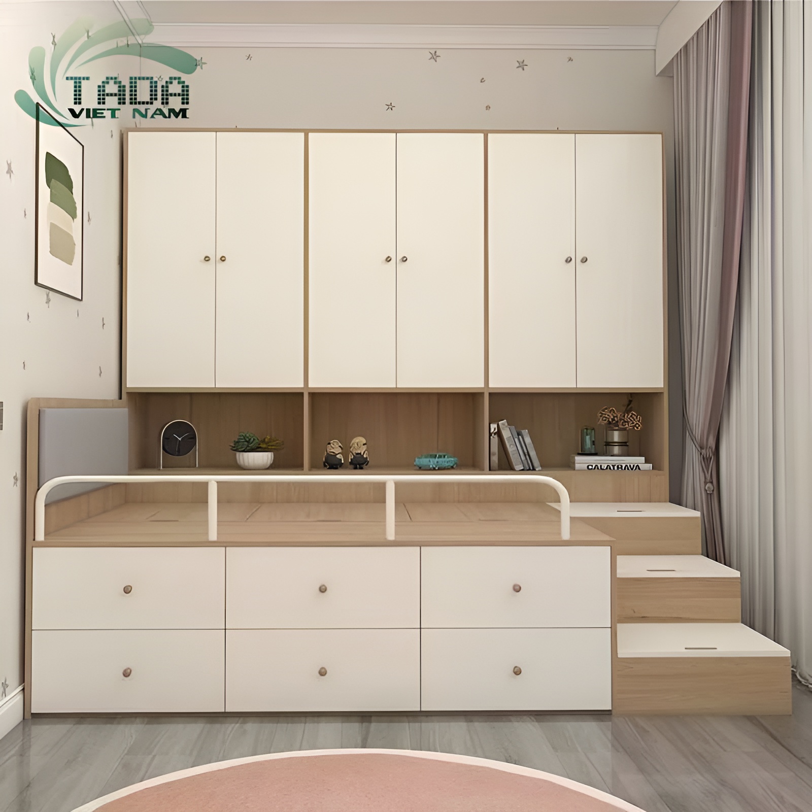 5/ Thiết kế giường kết hợp tủ quần áo và nhiều hộc tủ bao quanh dạng bục thanh lịch: TADA TD3187