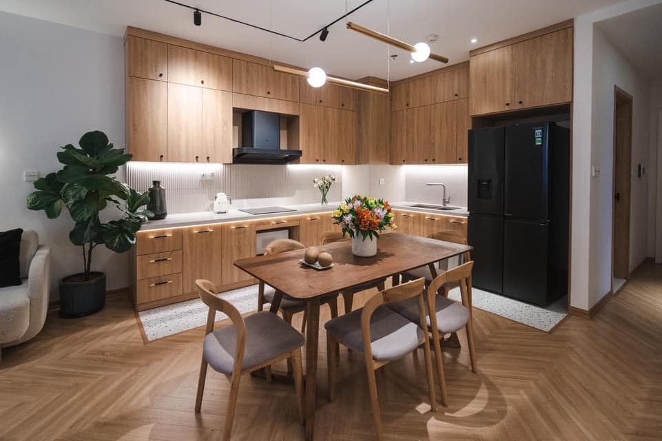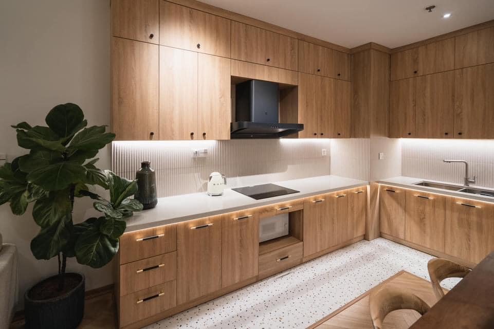 Tủ bếp chữ L làm cho không gian bếp được tối ưu