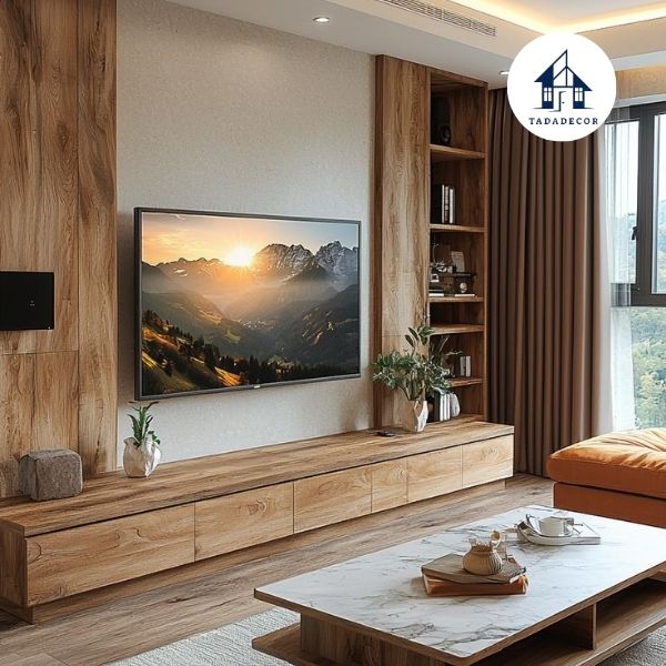 Tăng giá trị không gian: Theo thống kê từ các chuyên gia nội thất, một phòng khách được bố trí hài hòa với kệ tivi phù hợp có thể tăng giá trị thẩm mỹ lên đến 20% so với không gian không được tối ưu.