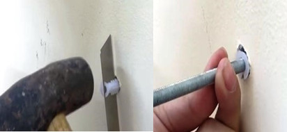2, Khoan lỗ trên tường ( sử dụng mũi khoan 6mm ) và đóng nở
