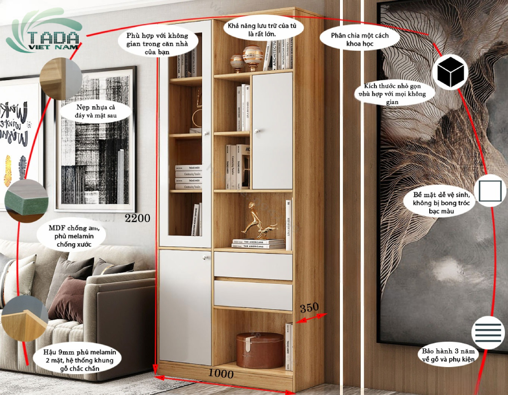 Kích thước :Cao 2m2 x rộng 1m x sâu 35cm