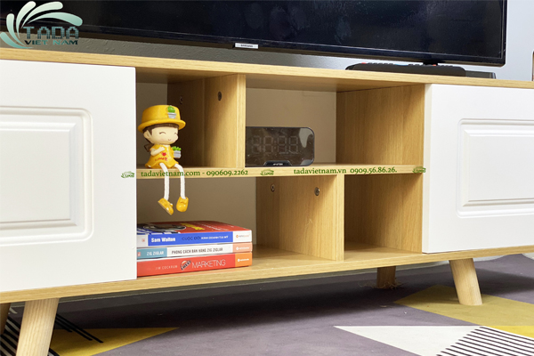 Ngoài các ngăn tủ được tích hợp cánh cửa đóng mở, nhằm tăng không gian để có thể bố trí thêm những vật dụng khác như đồ lưu niệm hoặc 1 vài món đồ trang trí, sách báo, tạp chí,... sản phẩm còn được bố trí các ngăn được phân cách hợp lý.