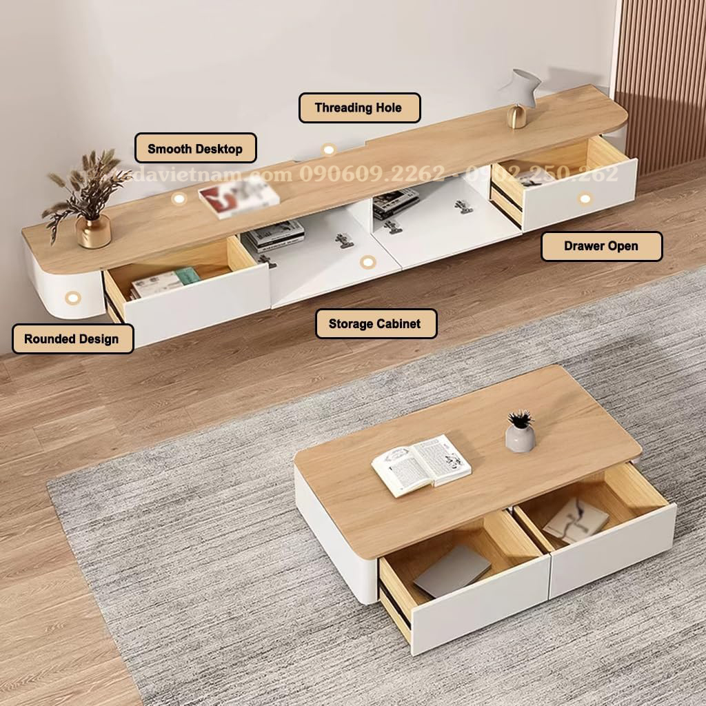 Kích thước (D x R x C):kệ tivi: 2m x 30cm x 25cm