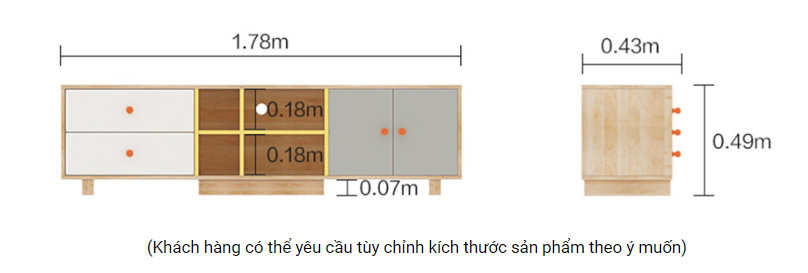 Kích thước (D x R x C):kệ tivi: 1m78x43x49cm
