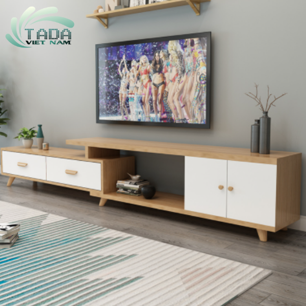 Với thiết kế đơn giản, kệ tivi gỗ công nghiệp không chỉ giúp cho không gian trở nên gọn gàng và ngăn nắp hơn mà còn hạn chế việc choáng diện tích hoặc gây cảm giác bí bách, đồng thời vẫn đảm bảo mọi vật dụng được bày trí phù hợp dựa trên nhu cầu, dễ dàng để người dùng tiếp cận khi cần thiết.