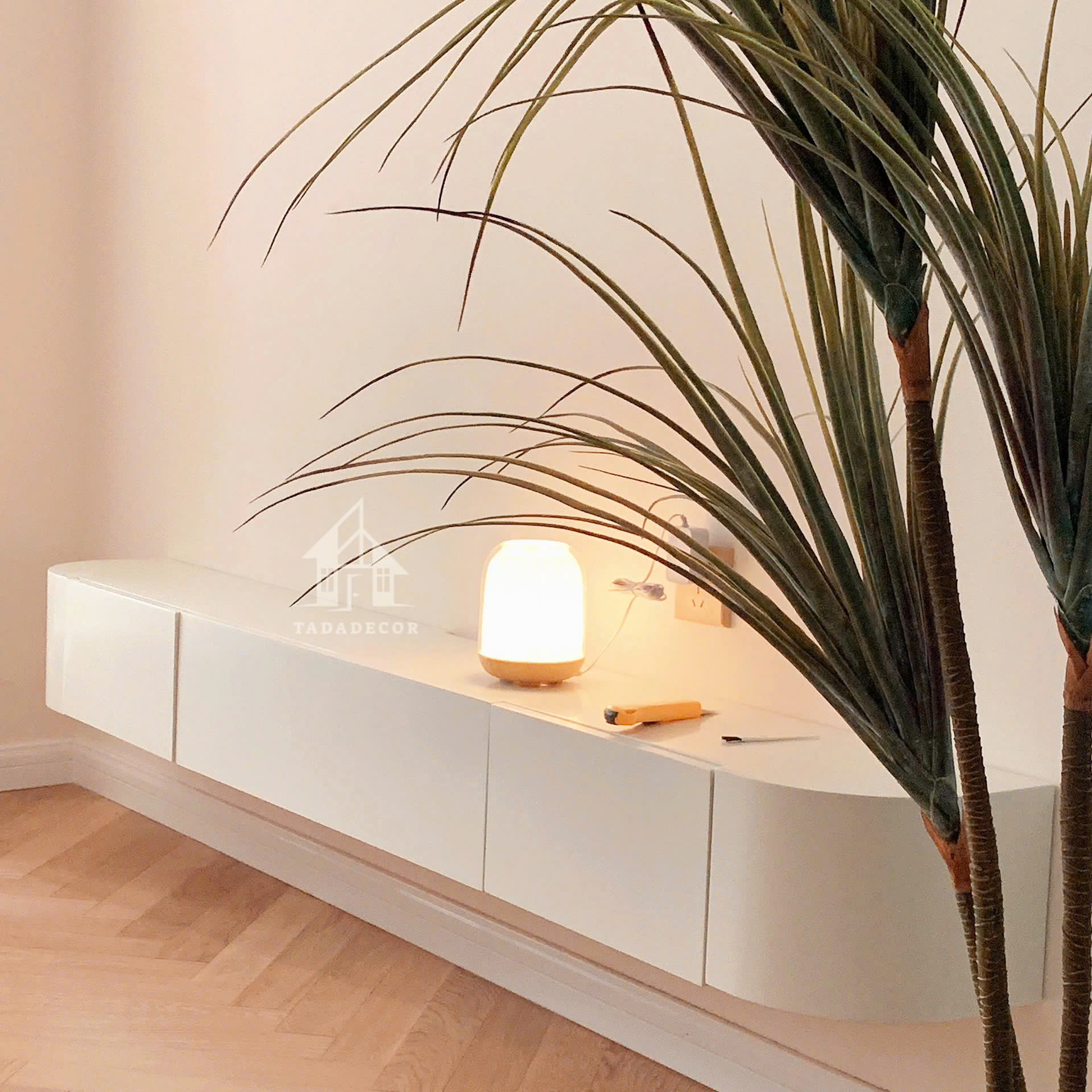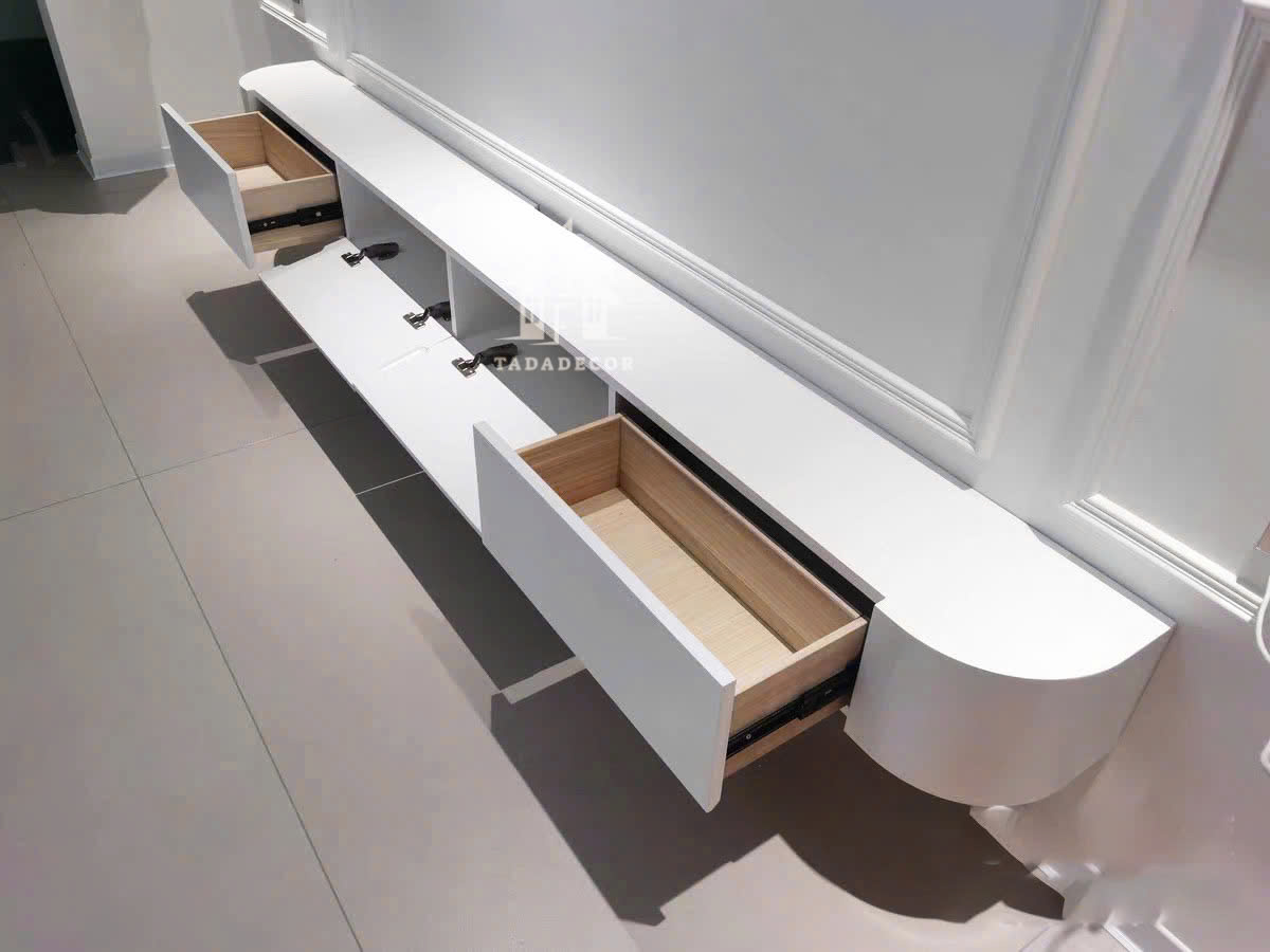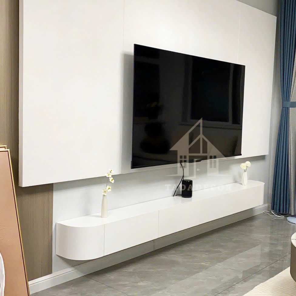 Kệ tivi treo tường bo cong màu trắng mẫu mới 2024 thương hiệu TADA VIETNAM - TDTV89