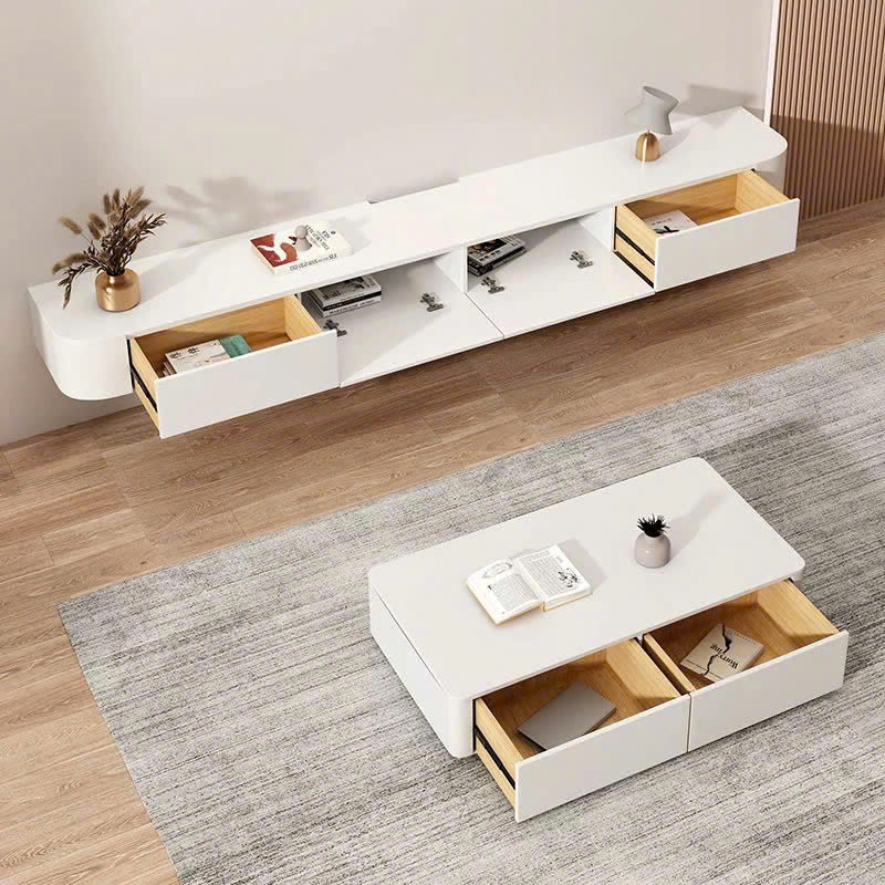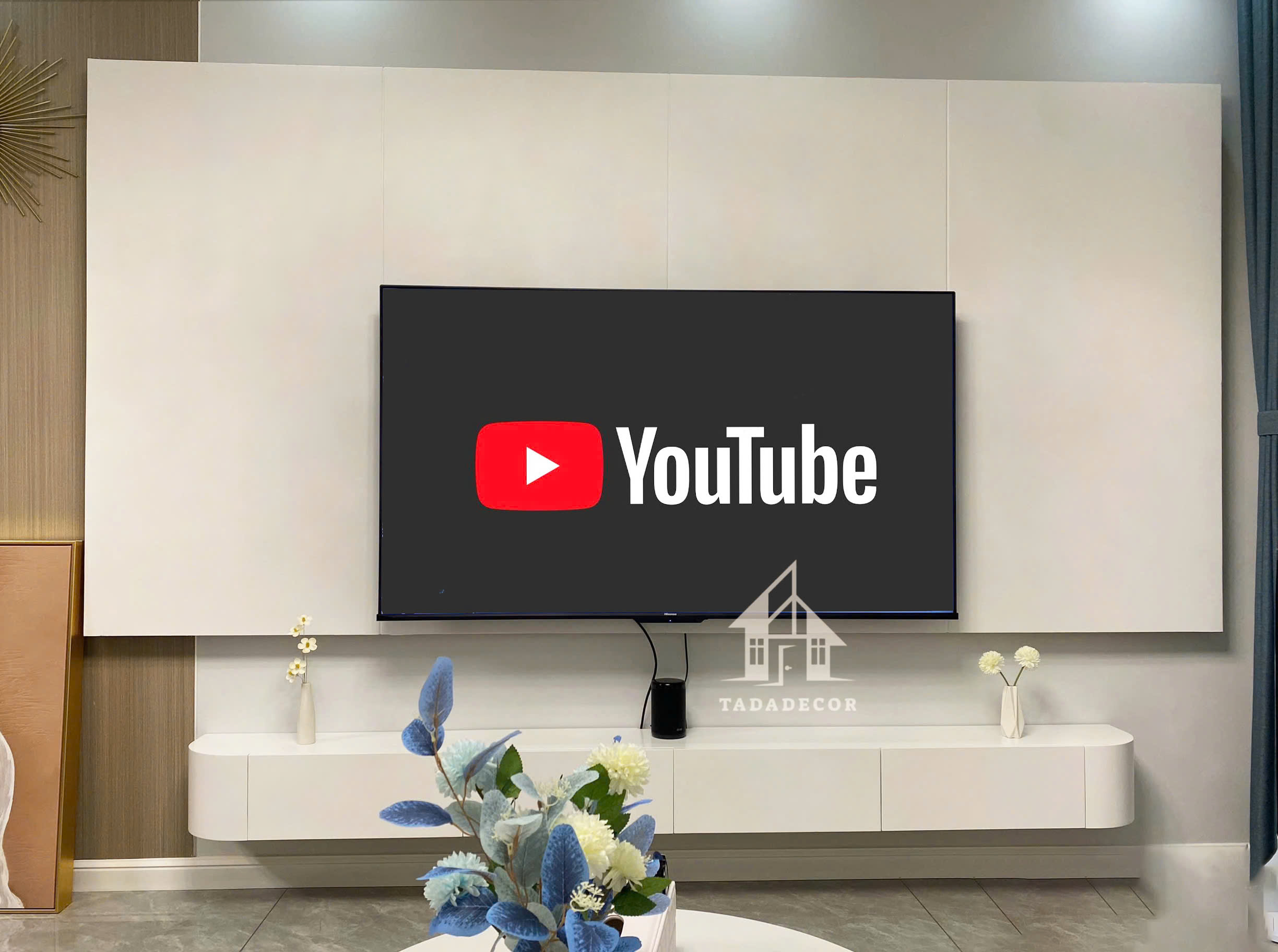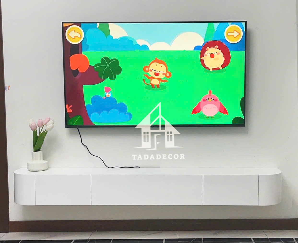 Kệ tivi treo tường bo cong màu trắng mẫu mới 2024 thương hiệu TADA VIETNAM - TDTV89