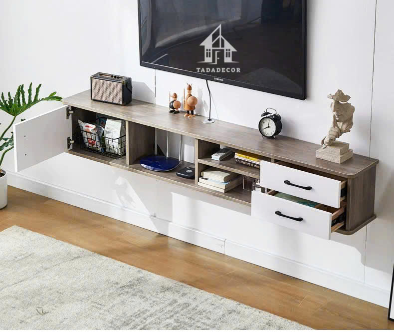 KỆ TIVI TREO TƯỜNG THIẾT KẾ HIỆN ĐẠI NGĂN KÉO 2 TẦNG- TD2404