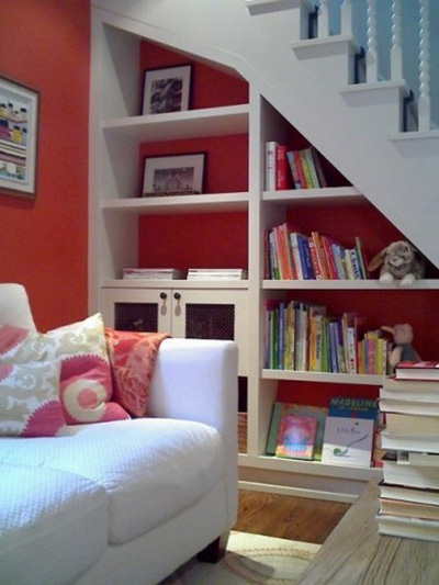 Ngoài ra, với kiểu nhà hiện đại ngày nay, cầu thang là nơi nối liền giữa không gian phòng khách với các không gian khác trong nhà. Để tiết kiệm và sử dụng không gian cầu thang hữu ích, những chiếc kệ dưới gầm cầu thang ngày càng trở nên thông dụng với nhiều thiết kế đẹp mắt