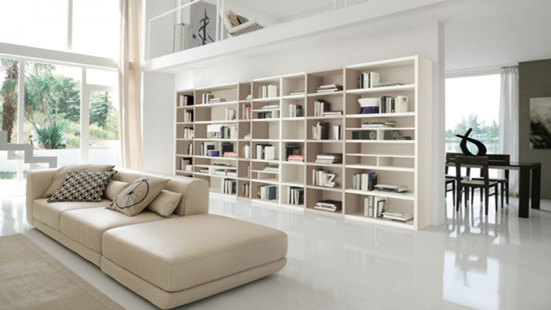 Kệ sách thông minh cùng tông màu với sofa trang nhã