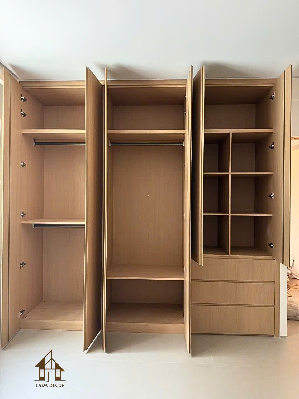 Công trình thực tế tại Hà Nội là một ví dụ điển hình cho khả năng thiết kế tủ quần áo gỗ công nghiệp theo yêu cầu của TADA Vietnam – kết hợp hài hòa giữa thẩm mỹ, công năng và độ bền. Dù là tủ quần áo âm tường, tủ quần áo cánh mở, hay tủ quần áo cửa lùa, đội ngũ của chúng tôi đều có thể tùy chỉnh theo từng diện tích và phong cách nội thất riêng biệt.