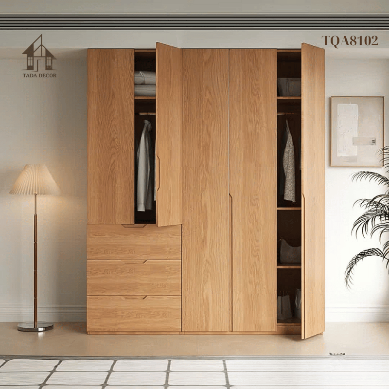 Ngoài vẻ đẹp thẩm mỹ, TQA8102 còn đáp ứng tốt nhu cầu lưu trữ quần áo của gia đình hiện đại. Với thiết kế đa ngăn khoa học, bạn có thể dễ dàng phân loại đồ dùng: áo sơ mi, váy, vest, chăn gối, túi xách, giày dép... Tủ vừa gọn gàng, vừa giúp tiết kiệm diện tích, phù hợp cả với những căn hộ chung cư có diện tích hạn chế.
