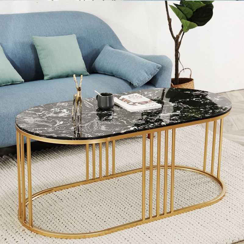 Một mẫu bàn trà mặt đá khá độc đáo khi được thiết kế hình bầu dục tạo cho ta đươc cảm giác nhẹ nhàng, mềm mại với màu sắc đen là chủ đạo kết hợp với những đường vân trắng khiến cho mẫu bàn trở nên thêmtinh tế và sang trọng.